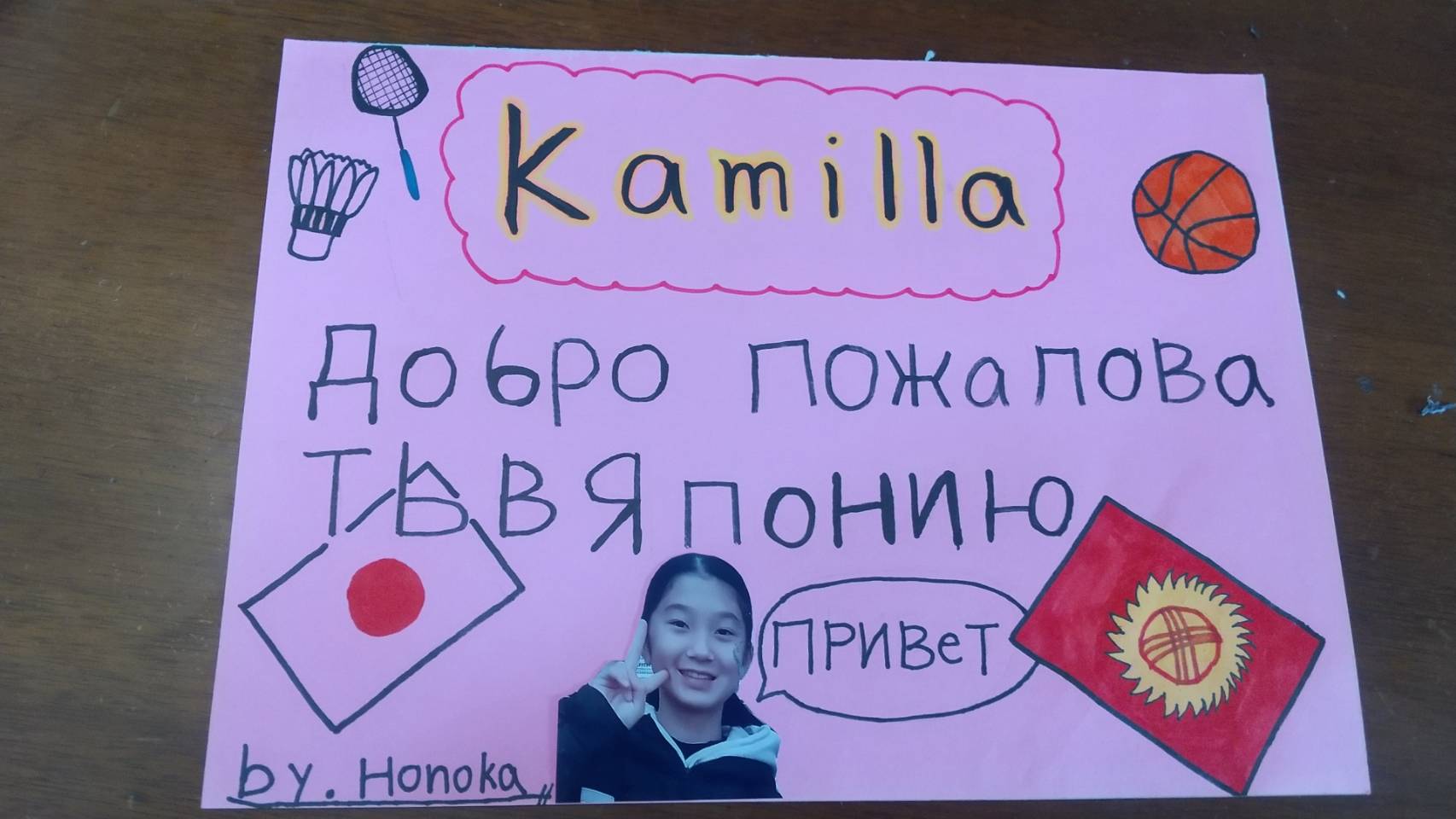 そして、3月27日から、4月6日まで、キルギスからカミラちゃんを受け入れしているシラスちゃん。渋谷本部にて、キルギスの対面式がありました!前日に、新小6のシラスちゃんは、ウエルカムボードを作ったりして、お迎えしました。対面式が終わると、キルギスの文化の紹介で、カミラちゃんがキルギスの伝統の踊りを踊ってくれたり、キルギスの楽器を別の大人の方が披露してくれて、珍しい楽器の音色を堪能しました。